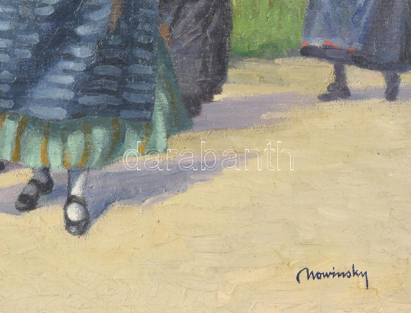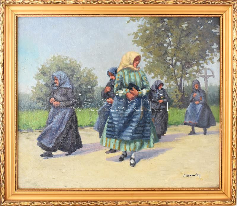 Nowinsky Jenő (1884-?): Hazafelé. Olaj, vászon, jelezve jobbra lent. H... https://www.darabanth.com/en/484-Online-auction/484.0/Paintings-and-graphics/Paintings-and-graphics~1500001/Nowinsky-Jeno-1884-Hazafele-Olaj-vaszon-jelezve-jobbra-lent-Hatolfalan-budapesti-Uj-S~II3140092