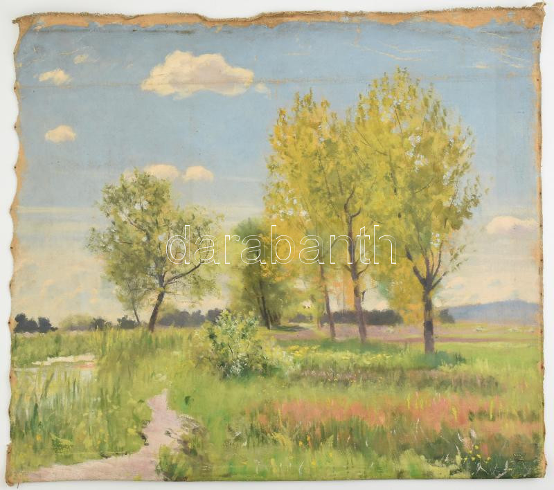 Sárdy Brutus (1892-1970): Tájkép. Olaj, vászon, vakráma nélkül, sérült, jelzés njélkül 51x59cm