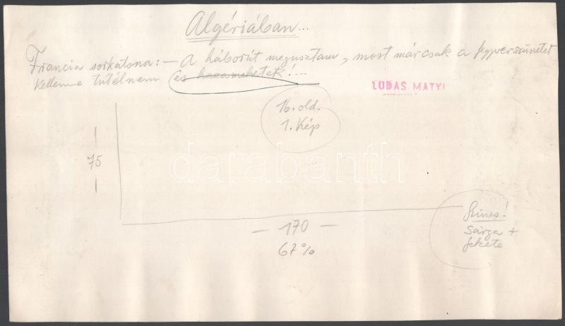 Szegő Gizi (1902-1985): Algériában (karikatúra). Vegyes technika, papír, jelzett. Hátoldalán "Ludas Matyi" bélyegzővel. 17,5x30 cm.