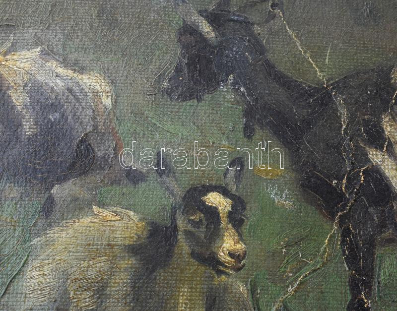 Viski János (1891-1987): Kecskék. Olaj, karton, jelzett. sérülésekkel, törésnyommal 50x60 cm