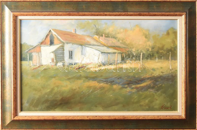 Ziegler Németh Ferenc (1971- ): Karcagi tanya. olaj, farost, jjl.: Németh. 37x60 cm, keretben, jó állapotú.