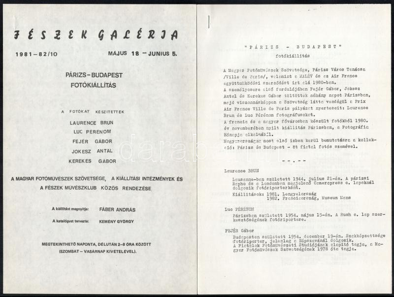 1981 Fészek Galéria Párizs-Budapest fotókiállítás bemutató és meghívó ...