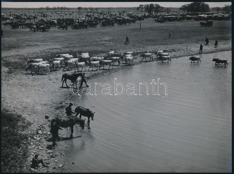 cca 1930-1940 Szendrő István (1908-2000): Állatvásár az Alföldön, pecséttel jelzett fotó, 17,5×23 cm