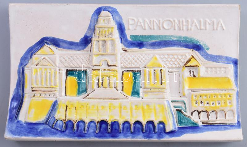 Pannonhalmi apátság. Mázas kerámia plakett, kis kopással, 24x14 cm
