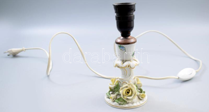 Herendi lámpatest, jelzett, rózsákon sérüléssel, m: 20 cm