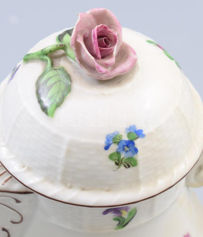 Herendi virágmintás kávés kanna. Jelzett, rózsán sérüléssel, száj érin...