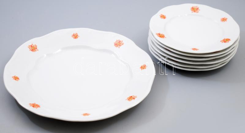 Zsolnay retro süteményes készlet, jelzett, 1 tálon repedéssel, d: 26 cm