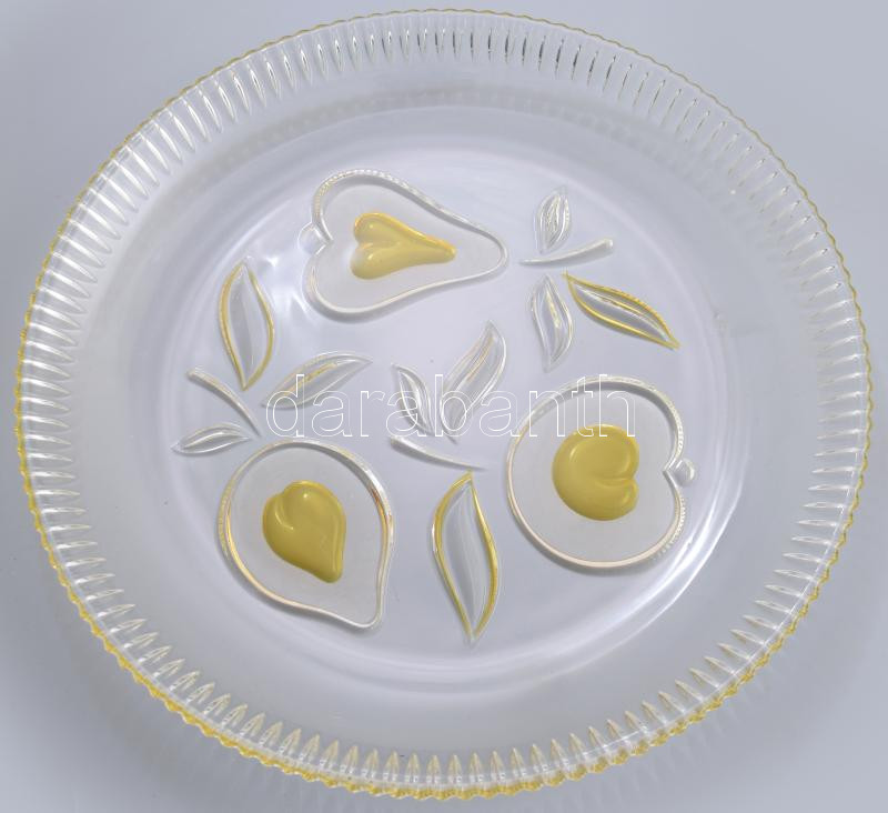 Antik kristály gyümölcsmintás kínáló, ezüstpácolt díszítéssel, hibátlan, d: 31 cm