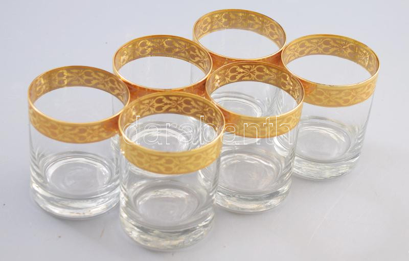 Aranymintás peremű whiskey pohár garnitúra, 6 db, m: 9 cm