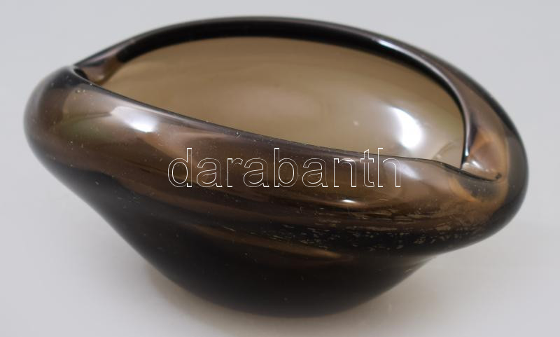 Cseh füstszínű üveg asztaldísz, h: 14 cm