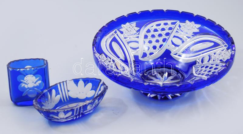 Kéken párolt kristály háromrészes asztali szett, pattogzással, d: 21,5 cm alatt