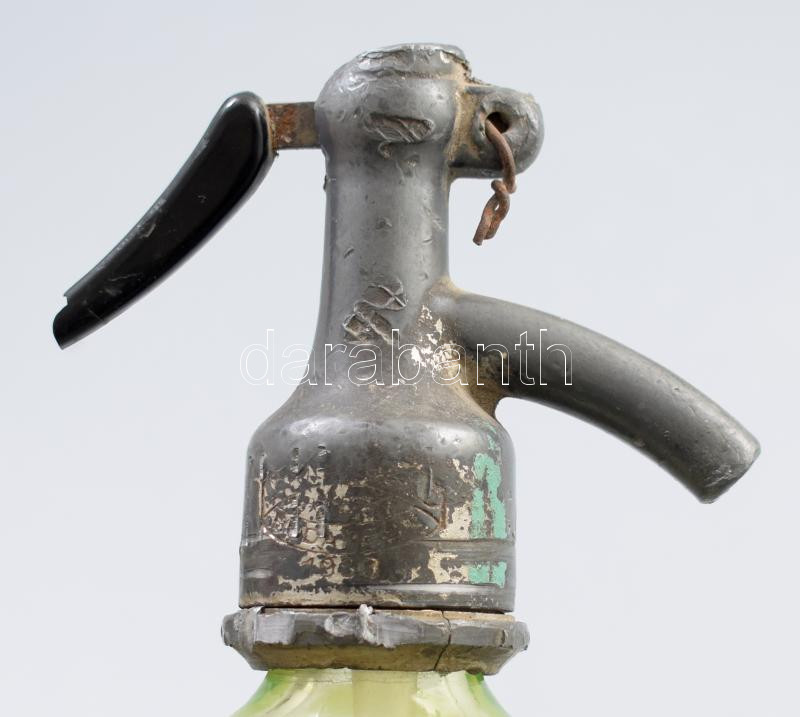 cca 1940 Szikora Jánosné Kiskőrös uránnal színezett szódásüveg, m: 29,...