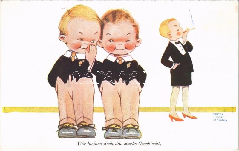 Wir bleiben doch das starke Geschlecht / Children art postcard. Wohlgemuth & Lissner No. 2538. s: Mabel Lucie Attwell