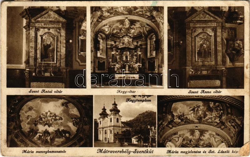 Description: 1938 Mátraverebély-Szentkút, Szent Antal oltár, Kegyoltár, Szent Anna oltár, Mária mennybemenetele, Kegytemplom, Mária megjelenése és Szent László kép (fa)