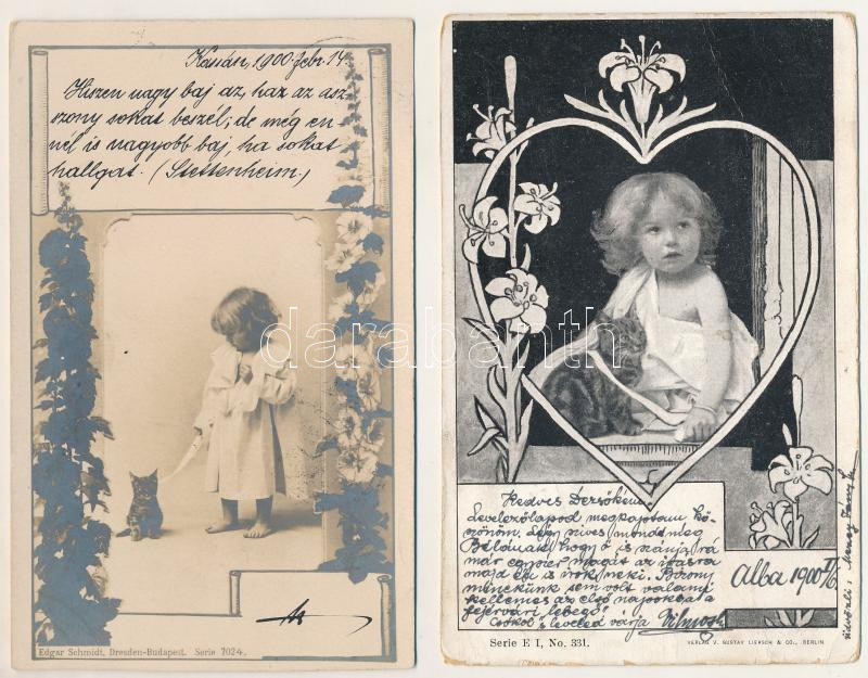2 db RÉGI motívum képeslap vegyes minőségben: gyerek macskával / 2 pre...