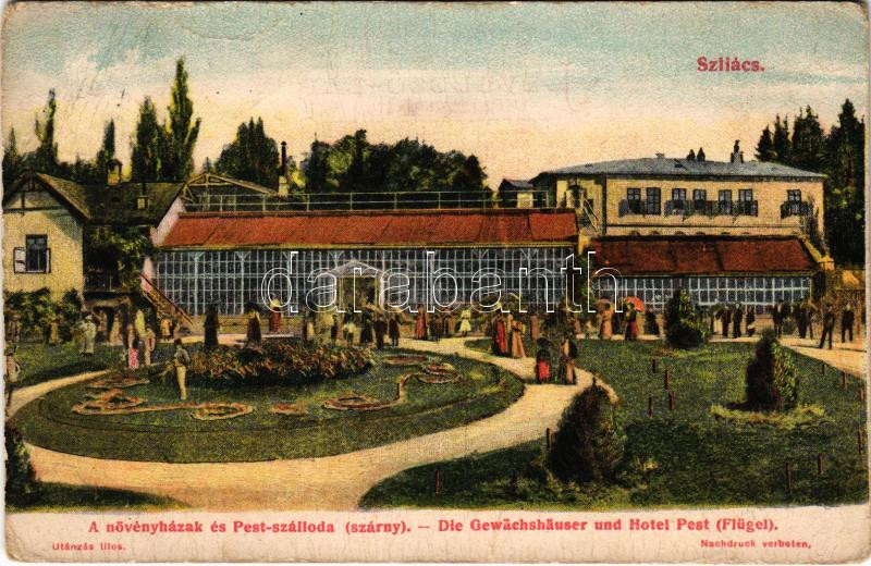 1911 Szliács, Sliac; Növényházak és Pest szálloda / Die Gewächshäuser ...