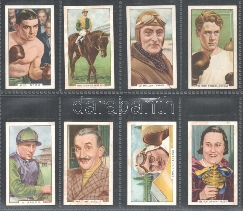 Description: Gallaher angol cigaretta-gyűjtőképek, 48 db-os komplett sorozat (sporthírességek), albumlapokon / English cigarette collectible pictures, complete series of 48 (Sporting Personalities), in album sheets