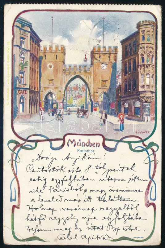 1900 Kézdi-Kovács László (1864-1942) festőművész, műkritikus személyes hangvételű autográf sorai müncheni képeslapon