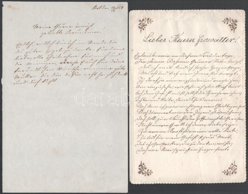 cca 1854-156 Pest és Lugos, 2 db családi levél, utóbbi Blau Emmától nagyapjához, német nyelven