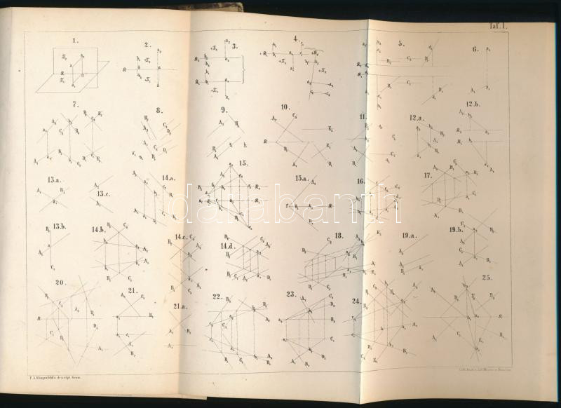 Description: Klingenfeld, [Friedrich August]: Lehrbuch der darstellenden Geometrie. Band I. Nürnberg, 1871, Bauer & Raspe, XI+(1)+140 p.+ 5 (kihajtható) t. Német nyelven. Korabeli félvászon-kötésben, kissé sérült borítóval, tulajdonosi névbejegyzéssel.