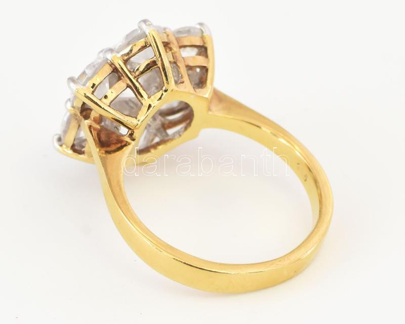 Aranyozott ezüst (Ag) gyűrű kövekkel, jelzett, méret: 50, bruttó: 4,7 ...