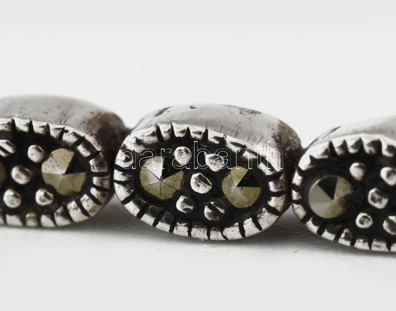 Ezüst (Ag) ovális szemű karkötő, markazit berakásokkal, h:18,5 cm, jelzett, 12,9g