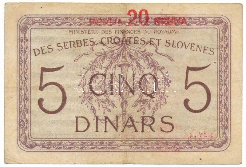 Jugoszlávia / Szerb-Horvát-Szlovén Királyság 1919. 5D "20K" felülbélye... https://www.darabanth.com/en/485-Online-auction/485.0/Numismatics/Worldwide-banknotes~2000015/Jugoszlavia-Szerb-Horvat-Szloven-Kiralysag-1919-5D-20K-felulbelyegzessel-alacsony-000-442~II3317479