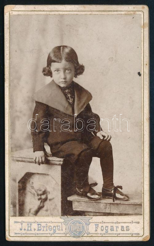 cca 1890 Kislány portréja, keményhátú fotó Briegel fogarasi műterméből...