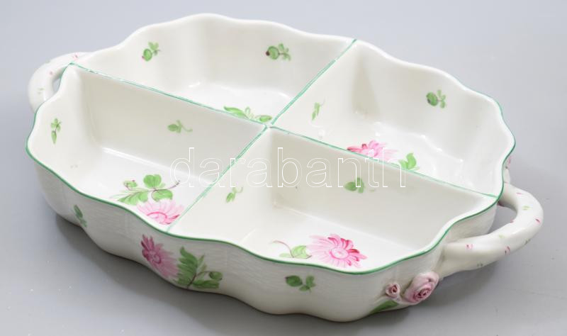 Herendi virág mintás négy rekeszes tartó. Kézzel festett, jelzett, kop...