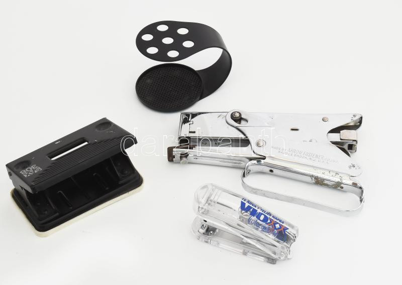 Vegyes íróasztali tétel lyukasztó, tolltartó, stb