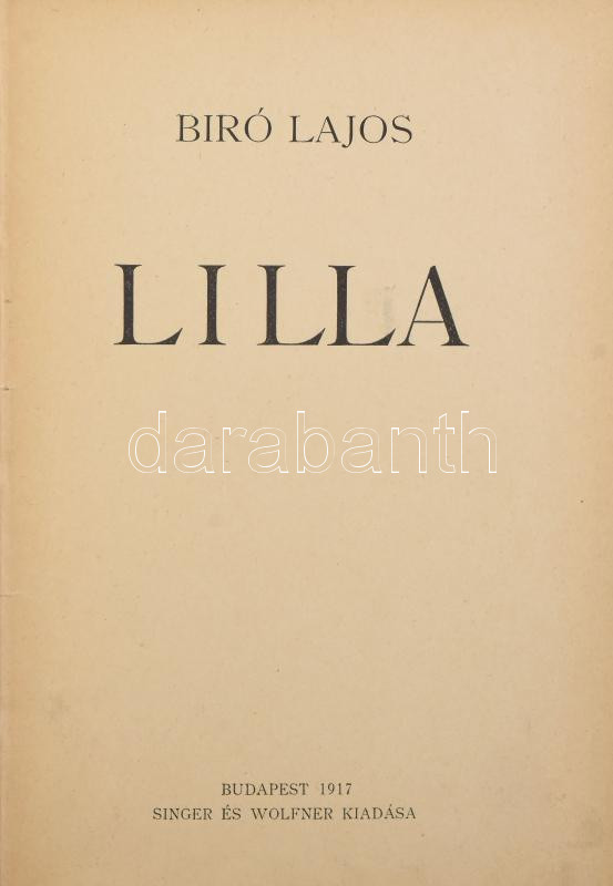 https://www.darabanth.com/en/486-Online-auction/486.0/Books/Books-Other-rarities~296/Biro-Lajos-Lilla-Bp-1917-Singer-es-Wolfner-kopott-mubor-kotes~II3292345