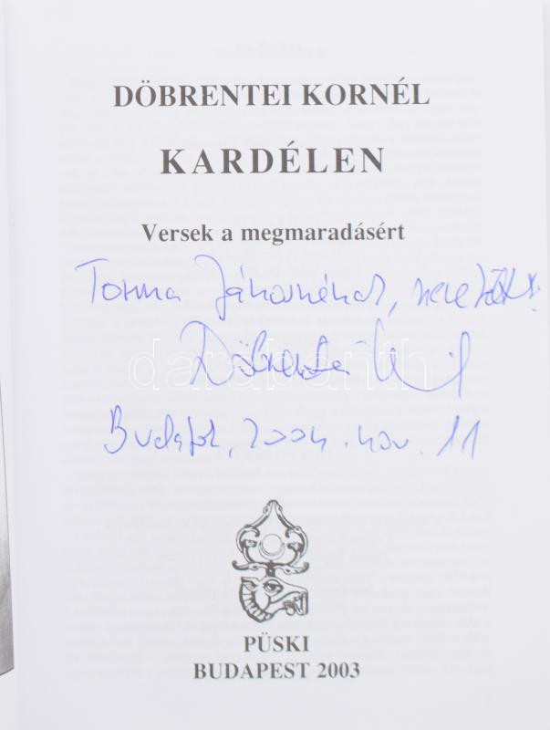https://www.darabanth.com/en/486-Online-auction/486.0/Books/Books-Other-rarities~296/Dobrentei-Kornel-Kardelen-Versek-a-megmaradasert-Bp-2003-Puski-DEDIKALT-Kiadoi-egeszvaszon~II3330131