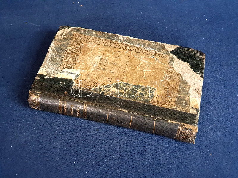 Fáy András: Fáy András eredeti meséi és Aphorizmái. Bétsben, 1820. Pichler Antal betüivel. 2 t. (acélmetszetű címkép és díszcímlap) + [8] + XVI + [17]-50 + [53]-128 p. Első kiadás. Fáy András (1786-1864) nemzetgazda, politikus, író, a reformkori közélet egyik legnevesebb alakja. Klasszikus mese- és elbeszélésgyűjteménye nem pusztán ezópusi mesék gyűjteménye: állatmeséken kívül bőven válogat az európai kultúrtörténet jeles alakjainak élettörténetéből (Rafaello, Cook, Haydn, Winckelmann), a magyar mondakincsből (Gellért hegye, Utazó labancok, Palócok), kötete pedig a reformkori szabadelvű szemlélet példaértékű gondolattára. A címképen és a díszcímlapon enyhe foltosság, a belív néhány levelén apró foltosság. A címlap verzóján régi tulajdonosi bejegyzés, példányunkból egy levél hiányzik. Szüry 1306. Aranyozott gerincű, enyhén sérült kiadói félbőr kötésben, az enyhén sérült kötéstáblákon a kiadvány eredeti, illusztrált fedőborítóinak részletei.