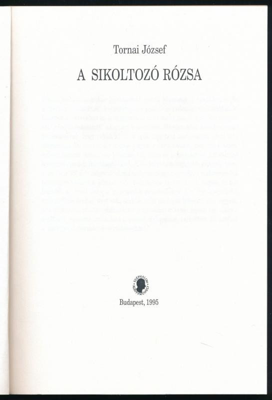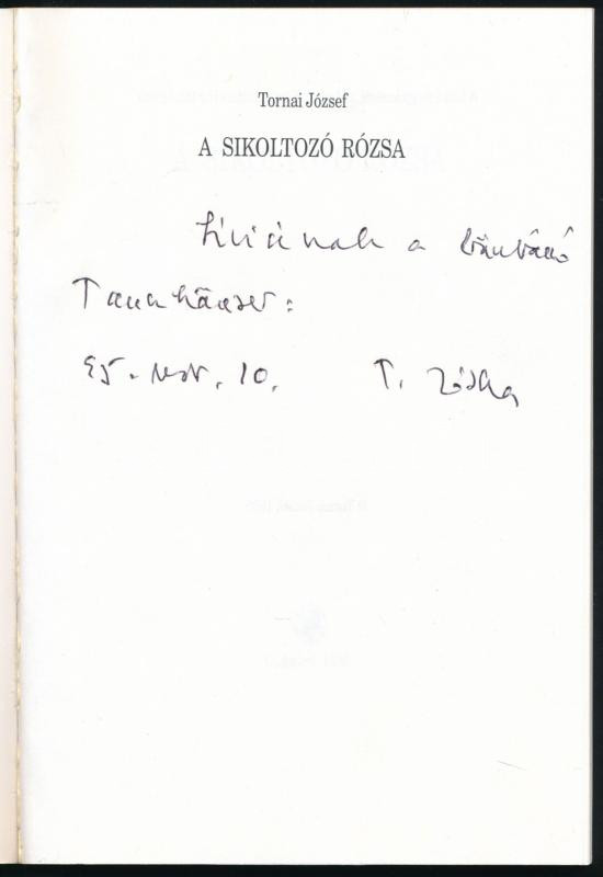 Tornai József: A sikoltozó rózsa. A szerző, Tornai József (1927-2020) ... https://www.darabanth.com/en/486-Online-auction/486.0/Books/Books-Other-rarities~296/Tornai-Jozsef-A-sikoltozo-rozsa-A-szerzo-Tornai-Jozsef-1927-2020-Kossuth-es-Jozsef~II3164648