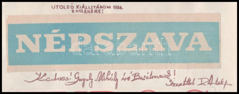 1984 Dévényi Antal (1910-1989) festőművész által egyedileg összeállított emlékkiadvány, ,,Utolsó kiállításom emlékére! 1984. Kedves Gergely Mihály író Barátomnak! Szeretettel D[évényi] Antal f[estő]m[űvész]", újságkivágásokból, kiállítási meghívókból összeállítva, Dévényi Antal autográf aláírásával és soraival, Gergely Mihály (1921-2007) József Attila-díjas író, újságíró, eszperantista részére, eredeti borítékkal