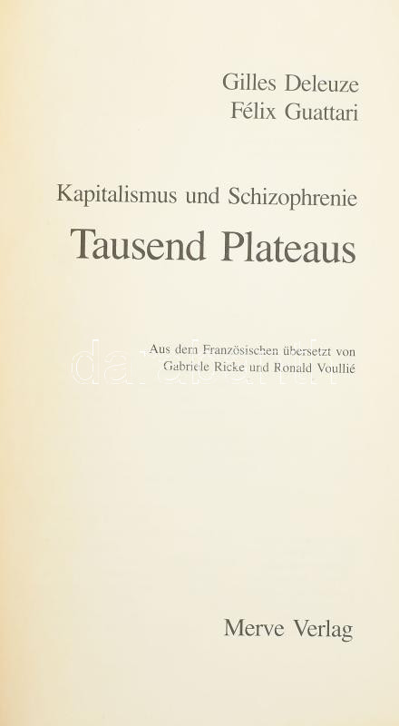 Gilles Deleuze - Félix Guattari: Kapitalismus und Schizophrenie. Tause... https://www.darabanth.com/en/487-Online-auction/487.0/Books/Books-Social-sciences~500030/Gilles-Deleuze-Felix-Guattari-Kapitalismus-und-Schizophrenie-Tausend-Plateaus-Aus-dem~II3332515