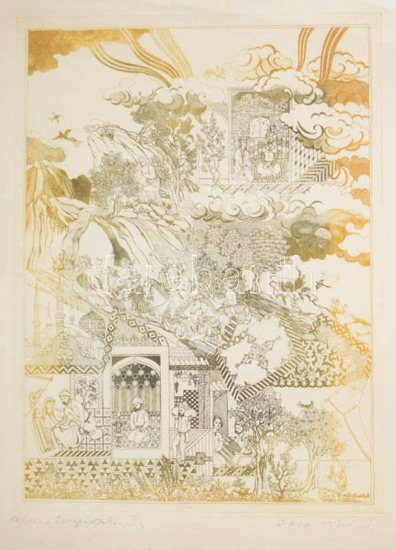 Zala Tibor (1920-2004): Ezeregyéjszaka II. Színes rézkarc, papír, jelz... https://www.darabanth.com/en/487-Online-auction/487.0/Paintings-and-graphics/Paintings-and-graphics~1/Zala-Tibor-1920-2004-Ezeregyejszaka-II-Szines-rezkarc-papir-jelzett-szamozott-16100-~II3284110