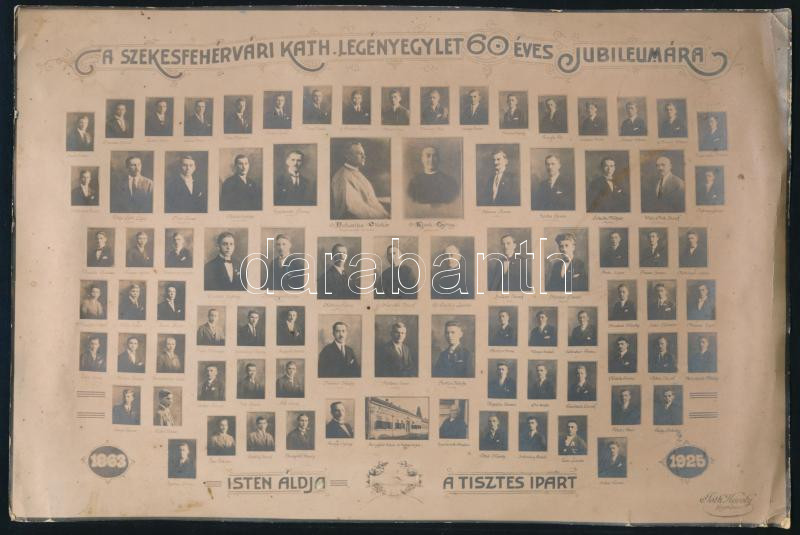 1925 A Székesfehérvári Kath. Legényegylet 60 éves jubileumára, tablófo... https://www.darabanth.com/en/487-Online-auction/487.0/Photography/Photo~2000065/1925-A-Szekesfehervari-Kath-Legenyegylet-60-eves-jubileumara-tablofoto-nevesitett-portrekkal-~II3320445