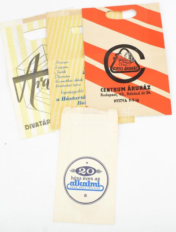 Vegyes retro reklámos zacskó tétel, Centrum Áruház, Aranypók, Háztartá... https://www.darabanth.com/en/488-Online-auction/488.0/Art-and-other-collectibles/Advertisement~1000002/Vegyes-retro-reklamos-zacsko-tetel-Centrum-Aruhaz-Aranypok-Haztartasi-es-Illatszer-Bolto~II3237612