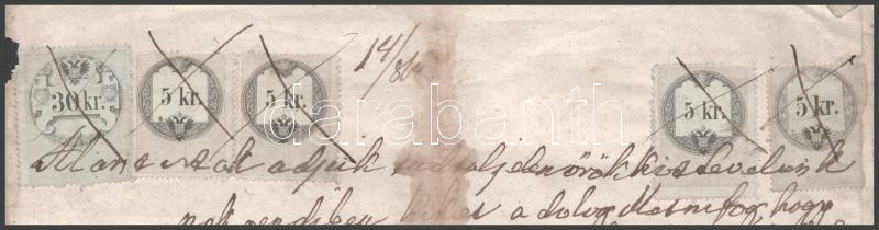 1864 Zsáka, Magyar nyelvű illetékbélyeges irat4×5kr + 30 kr illetékbél...