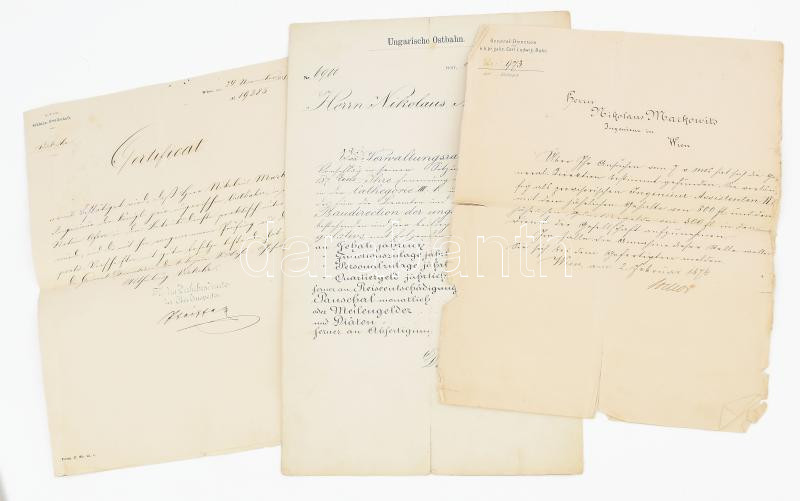 https://www.darabanth.com/en/488-Online-auction/488.0/Art-and-other-collectibles/Documents~22/1871-1874-Markovits-Markovics-Miklos-vasuti-mernok-3-db-irata-15kr-okmanybelyegekkel~II3260422