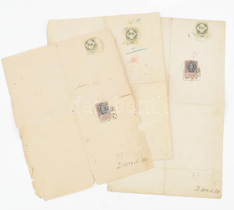 1871-1874 Markovits (Markovics) Miklós vasúti mérnök 3 db irata, 15kr okmánybélyegekkel