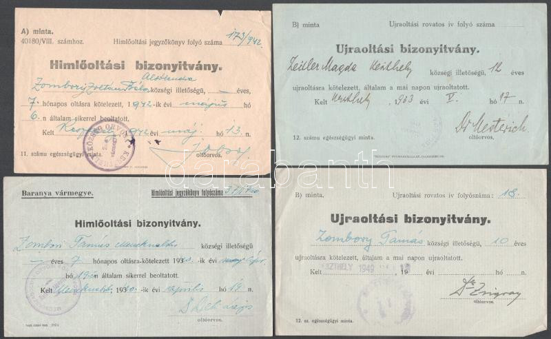 cca 1945-1960 7 db himlő és oltási igazolvány egyben