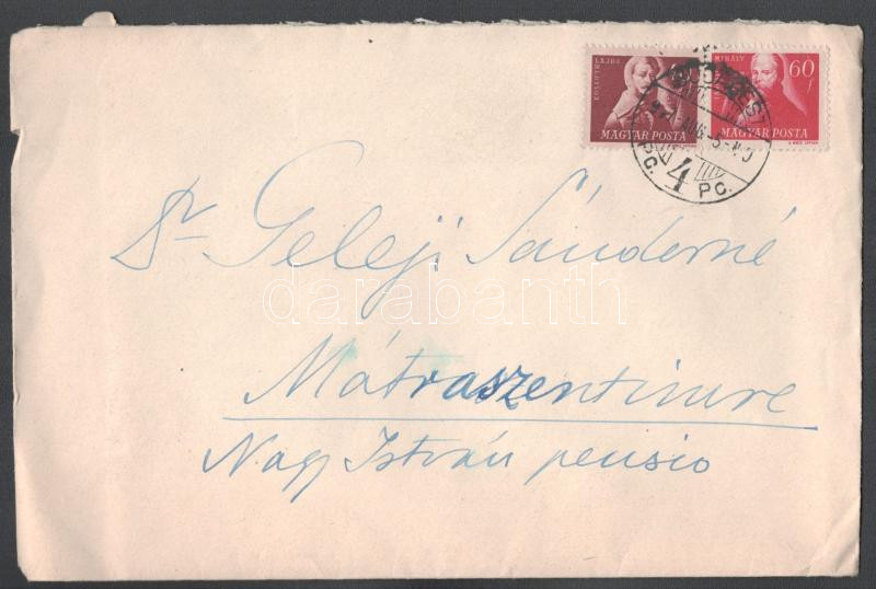 1947 Geleji Sándor (1898-1967), a csepeli Weiss Manfréd Művek igazgatójának (1945-49), későbbi kétszeres Kossuth-díjas professzor levele feleségéhez, Gerő Zsófiához (1895-1966), Gerő Ödön (1863-1939) műkritikus, író lányához, amelyben a Weiss Manfréd Művekben a hároméves tervről tartott megbeszélésről számol be. Más egyéb érdekes részlettel. 4 kézzel írt oldal, Geleji Sándor autográf aláírásával, eredeti borítékban.