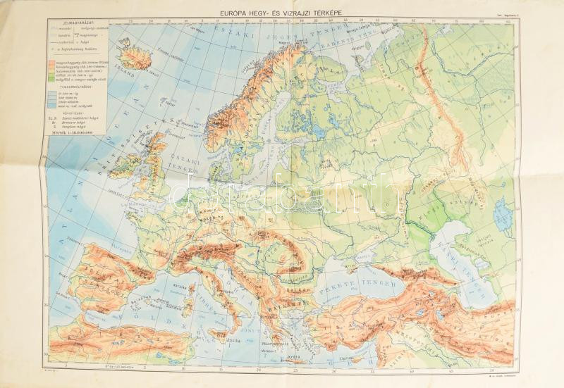1931 Európa hegy- és vízrajzi térképe, tervezte: Kogutowicz Károly, 1 ...