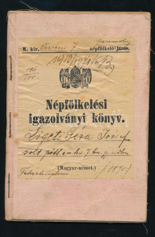 https://www.darabanth.com/en/488-Online-auction/488.0/Art-and-other-collectibles/Military~1000009/1913-Versec-nepfolkelesi-igazolvanyi-konyv-M-kir-verseci-7-nepfolkelo-parancsnoksag~II3340706