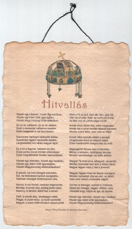 Hitvallás (Magyar Hiszekegy), Papp-Váry Elemérné Sziklay Szeréna költeménye, modern nyomat merített papíron, kissé gyűrött, 30,5x21 cm