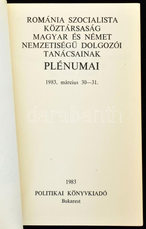 Románia Szocialista Köztársaság magyar és német nemzetiségű dolgozói t... https://www.darabanth.com/en/488-Online-auction/488.0/Books/Books-History~1000019/Romania-Szocialista-Koztarsasag-magyar-es-nemet-nemzetisegu-dolgozoi-tanacsainak-plenumai~II3344331