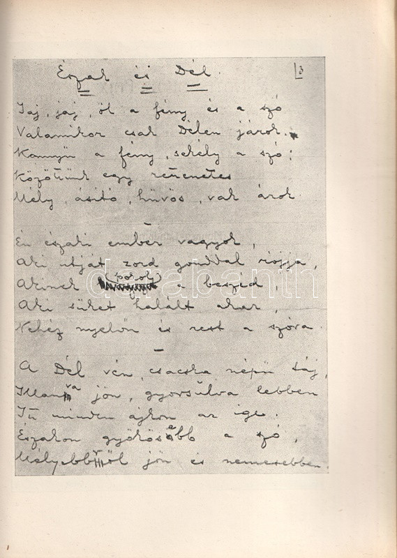 Révész Béla: Ady Endre életéről, verseiről, jelleméről. Kiegészített második kiadás. Budapest, [1925]. Athenaeum Irodalmi és Nyomdai Rt. 1 t. (címkép) + 202 p. + 26 t. (11 kétoldalas). Kötetünk szerzője, Révész Béla (1876-1944) újságíró, szerkesztő, színpadalapító 1905-ben ismerkedett meg Ady Endrével, a költő belső baráti köreihez tartozott, a Népszavában és egyebütt lelkesen építette az Ady-kultuszt. A könnyes meghatódottság kultikus hangján megírt Ady-életrajz intim részletekben dúskál, a költő titkos gondolatainak megsejtésére vállalkozik, továbbá egyedi, vállaltan elfogult nézőpontból közvetíti az Ady fellépése nyomán támadt nyugtalanságot az irodalmi életben. A mű első kiadása 1922-ben jelent meg, példányunk a kiegészített második kiadásból származik. A táblák zöme Ady kéziratainak hasonmásait közli, Ady-fotók kísértében. A címkép verzóján régi tulajdonosi bélyegzés. Fűzve, illusztrált, enyhén sérült kiadói borítóban. Jó példány.