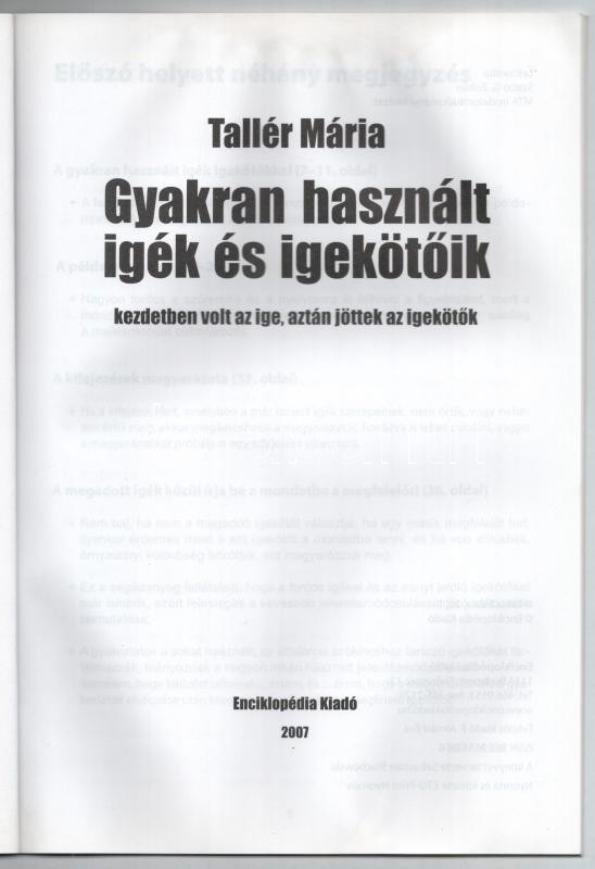 Tallér Mária: Gyakran használt igék és igekötőik kezdetben volt az ige, aztán jöttek az igekötők. Bp., 2007., Enciklopédia. Kiadói papírkötés.